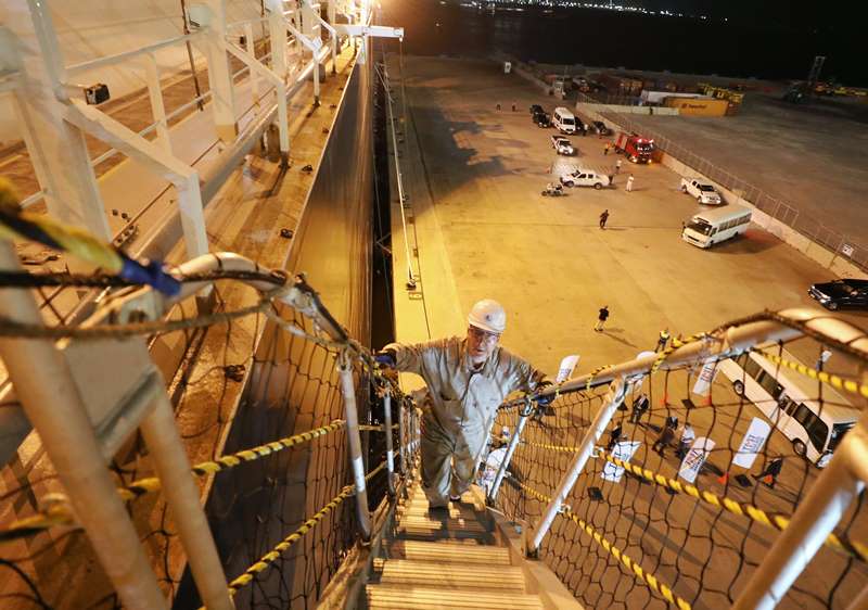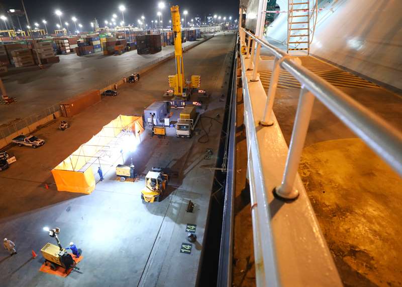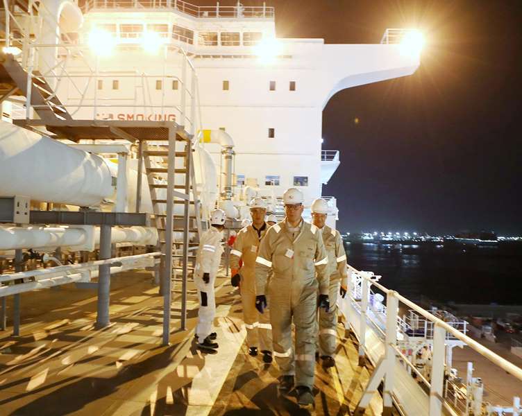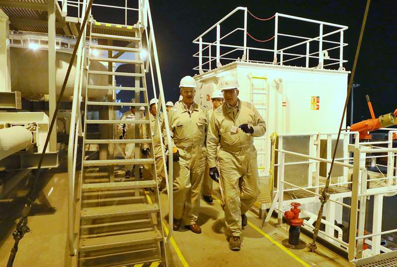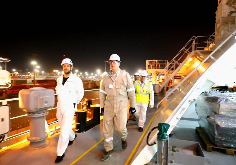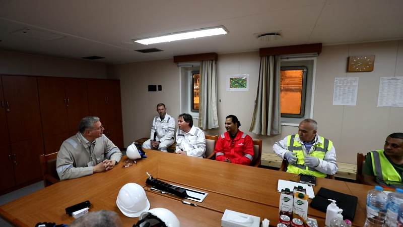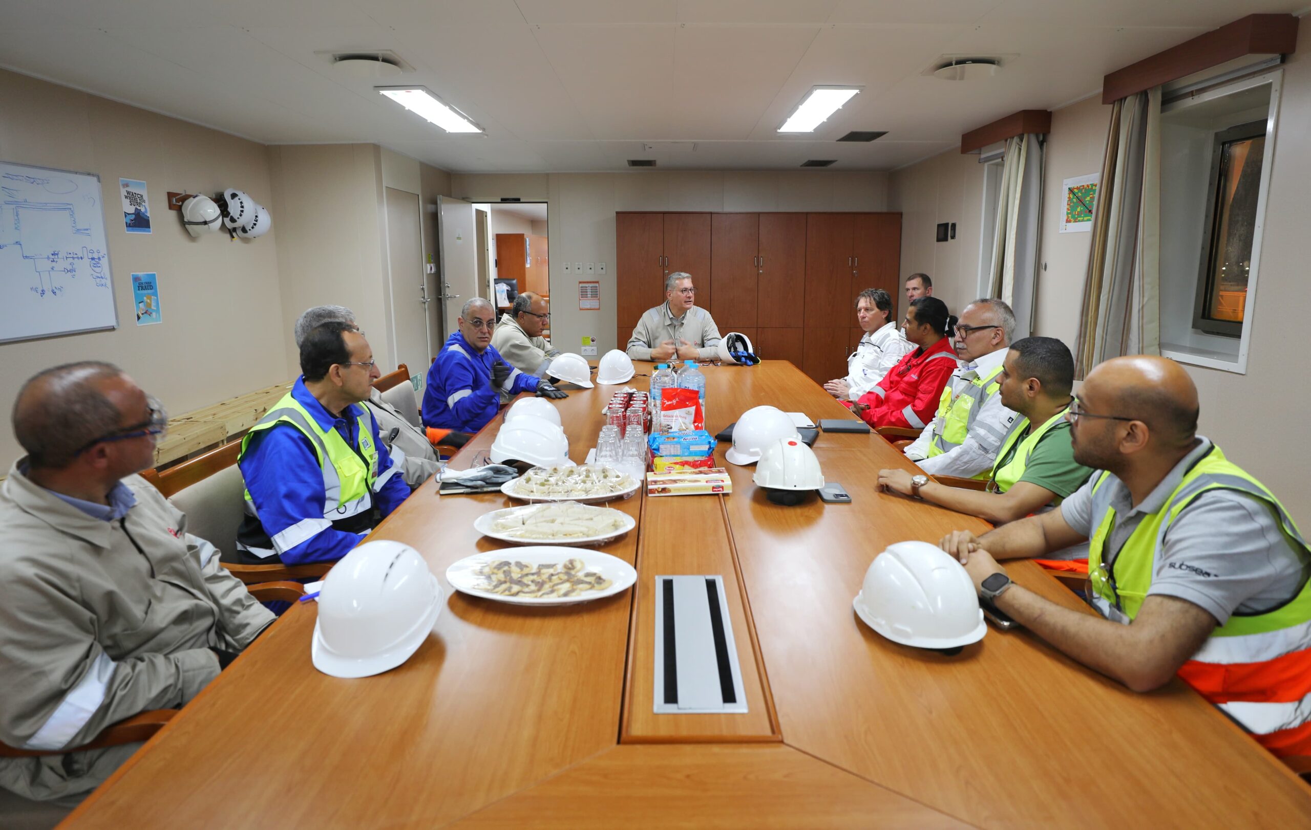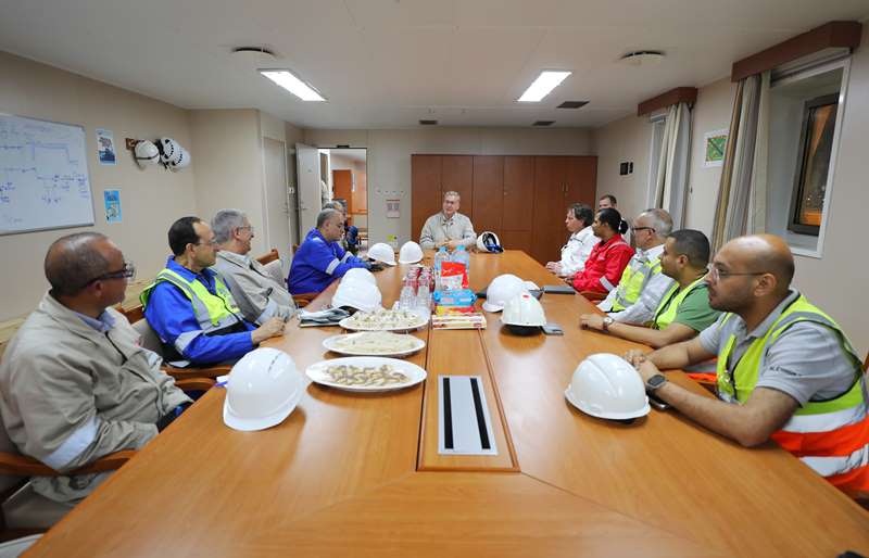 وخلال الزيارة، شهد المهندس كريم بدوى، مدى تقدم الأعمال الأعمال الفنية والتعديلات اللازمة للسفينة التي وصلت إلى ميناء الإسكندرية، ووجّه بأهمية تعجيل إتمام التجهيزات مع الالتزام الكامل بكافة اشتراطات السلامة والصحة المهنية وحماية البيئة.