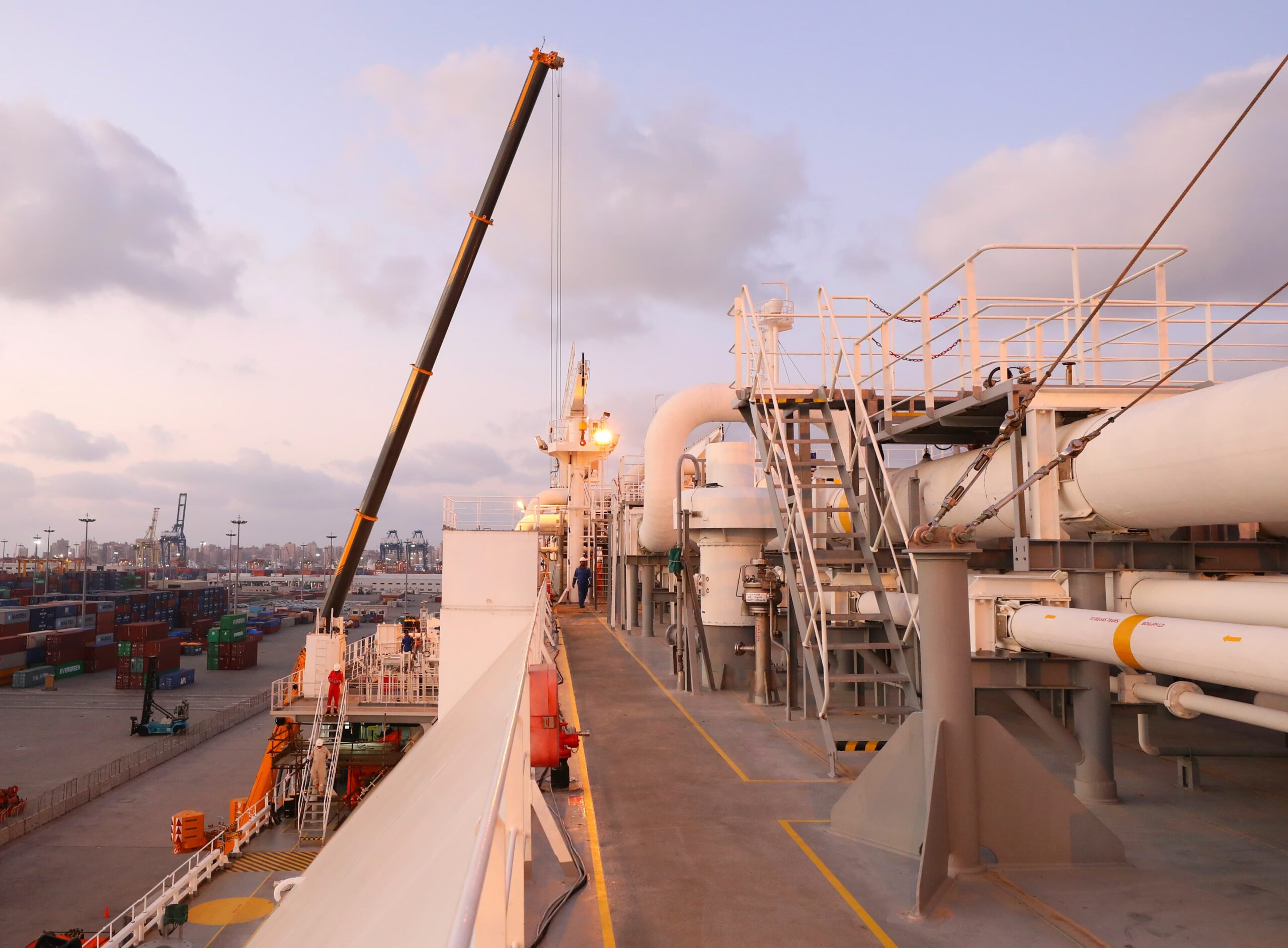 شهد المهندس كريم بدوي خلال جولته موقف تقدم الأعمال الفنية والتجهيزات الخاصة بالسفينة، واطلع على الإجراءات الفنية والتعديلات الجارية تمهيدًا لبدء نقلها وربطها على ميناء السخنة خلال الفترة المقبلة.