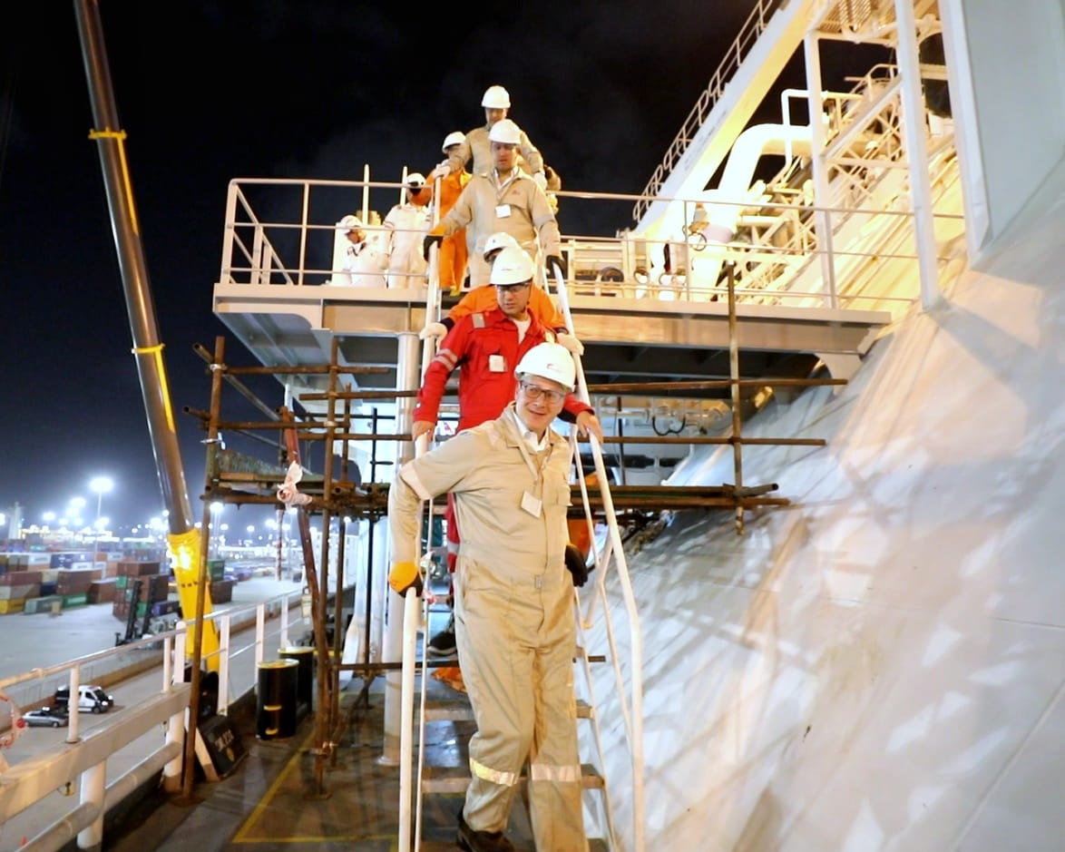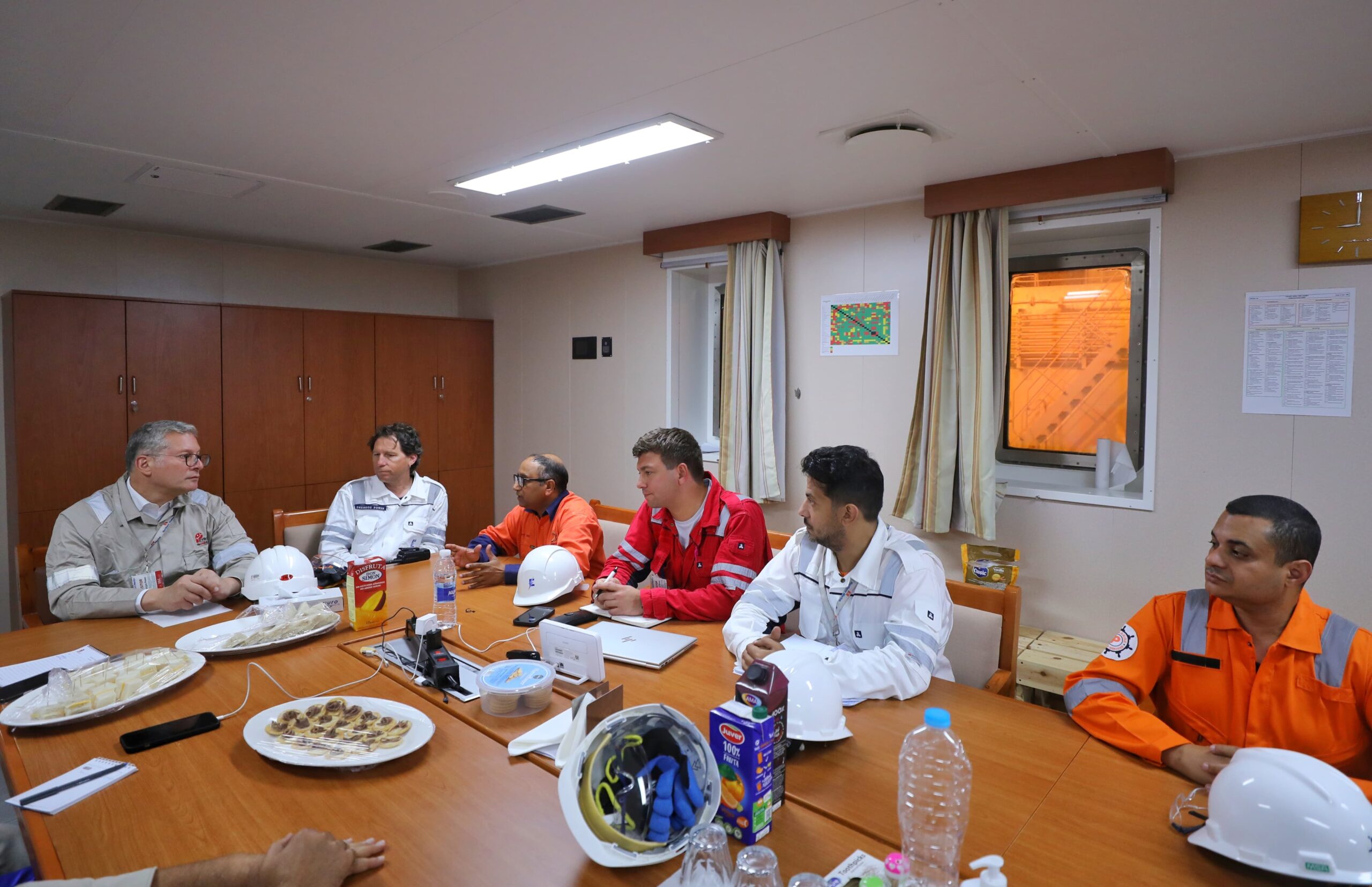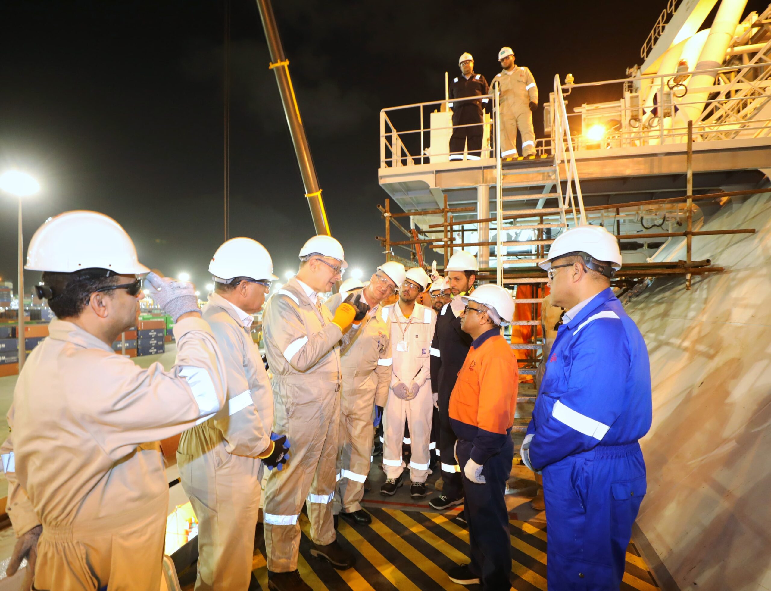 وجّه الوزير التحية لفرق العمل الذين يعملون على مدار ال 24 ساعة بروح الفريق الواحد للاسراع من اعمال التجهيزات والتعديلات اللازمة للسفينة وحرصهم الدائم على الالتزام الكامل بكافة اشتراطات السلامة والصحة المهنية، بما يضمن تشغيلًا آمنًا وفعالًا وفق أعلى المعايير الدولية.