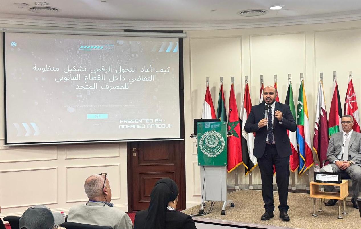 وخلال الجلسة الثانية وتحت عنوان.. “كيف أعاد التحول الرقمي تشكيل منظومة التقاضي الإلكتروني داخل القطاع القانوني بالمصرف المتحد؟” قام محمد ممدوح – كبير المحامين والمسئول عن إدارة التقاضي الإلكتروني، باستعراض تجربة المصرف المتحد منذ 2022، حيث اعتمدت منظومة التقاضي الإلكتروني، كأول بنك يفعل نظام التقاضي الالكتروني بشكل كامل للإجراءات القضائية أمام المحاكم الاقتصادية.