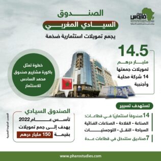 وعتبر هذه الخطوة باكورة مشاريع صندوق محمد السادس للاستثمار، الذي أسسه المغرب سنة 2022 بهدف جمع تمويلات بقيمة 150 مليار درهم على المدى البعيد، وفق إنفوجراف لمركز “فاروس” للدراسات الإفريقية والاستشارات.