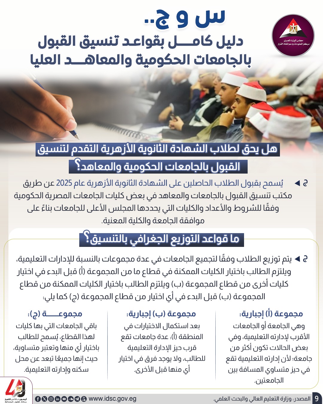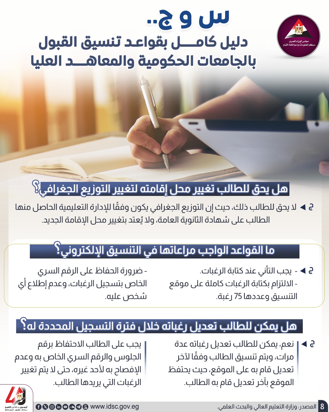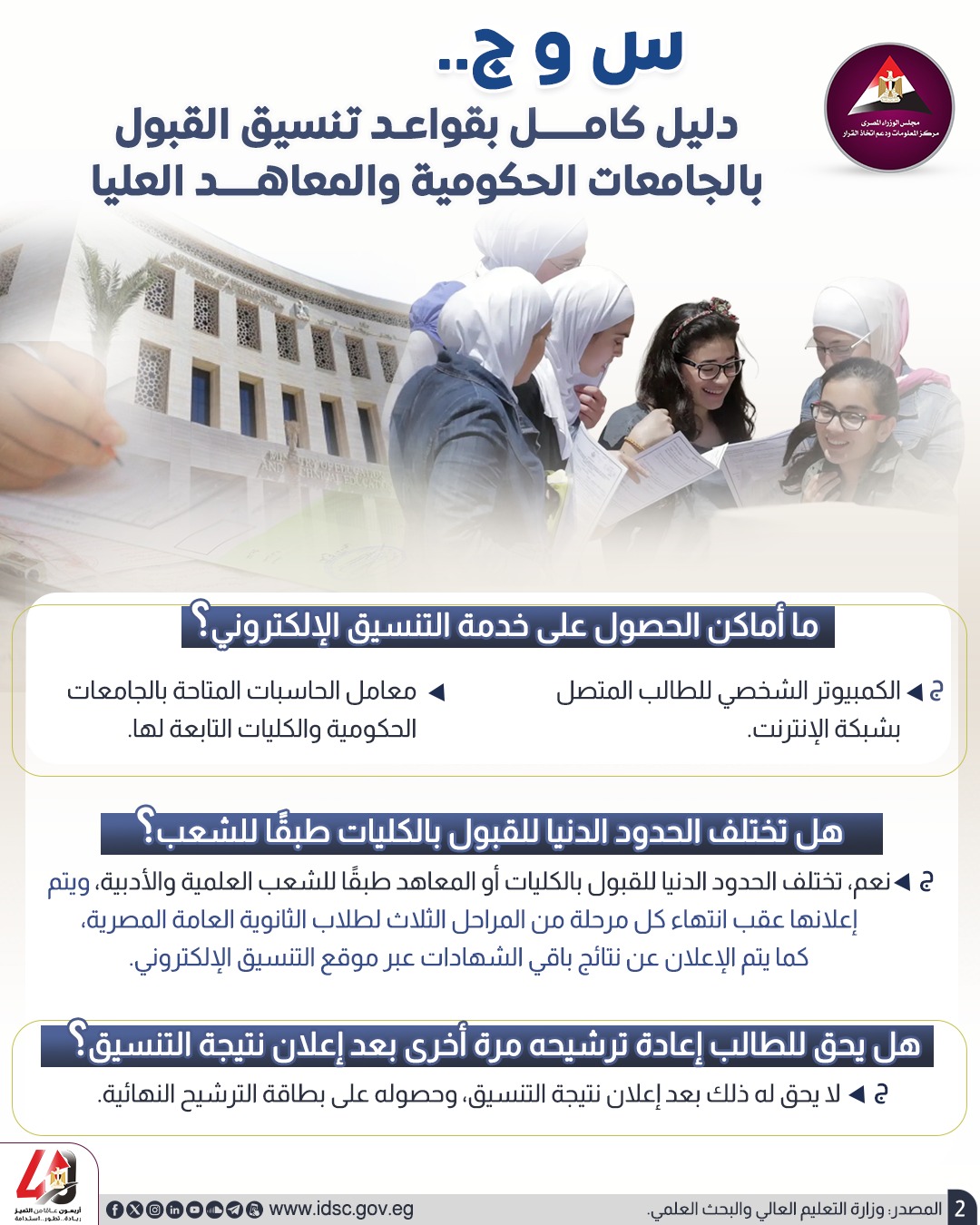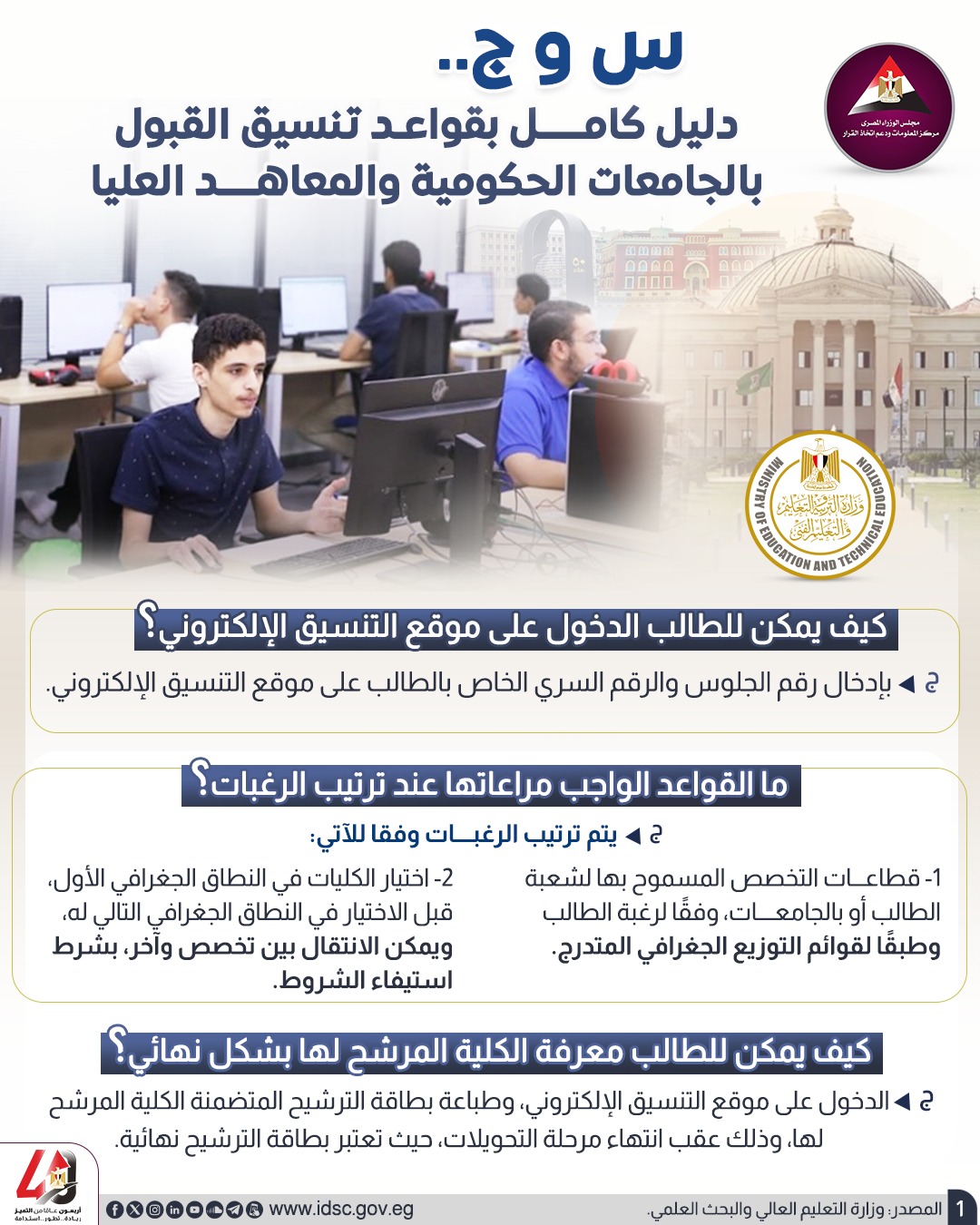 أهم 25 سؤالا عن تنسيق الجامعات والمعاهد للعام الدراسي الجديد 2025 (إنفوجراف)