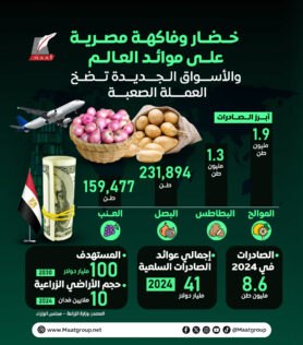 خضار وفاكهة مصرية على موائد العالم.. ارتفاع صادرات مصر الزراعية | إنفوجراف