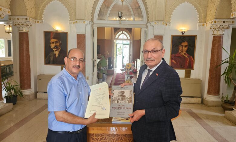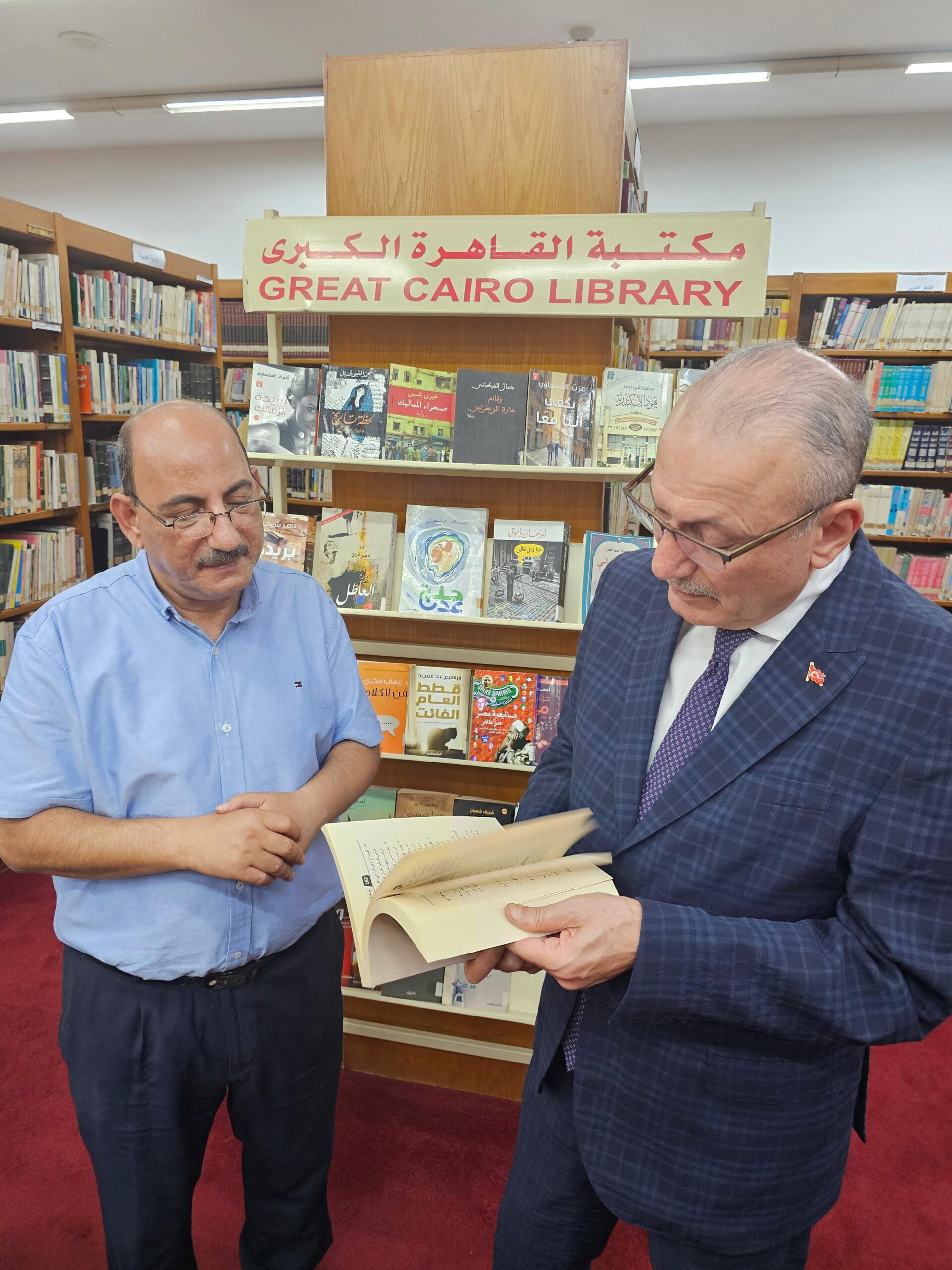 سفير تركيا يهدي مجموعة كتب إلى مكتبة القاهرة الكبرى بعد زيارتها واطلاعه على مقتنياتها