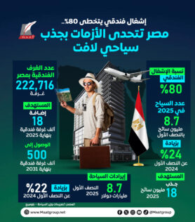 رغم أزمات المنطقة.. إشغال فندقي يتخطى 80% بمصر | إنفوجراف