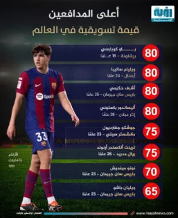أعلى المدافعين قيمة تسويقية في العالم | إنفوجراف