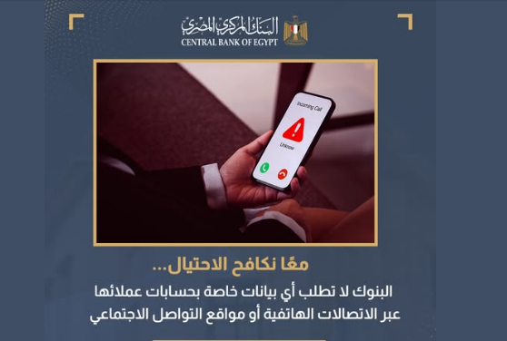 في إطار الحرص الدائم على توعية المواطنين بمخاطر الاحتيال المصرفي، يؤكد البنك المركزي المصري على أن البنوك لا تطلب أبدًا أي بيانات خاصة بحسابات العملاء سواء عبر الاتصالات الهاتفية أو من خلال مواقع التواصل الاجتماعي.