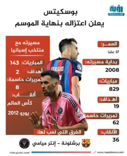 بوسكيتس يعلن اعتزال كرة القدم بعد مسيرة حافلة | إنفوجراف