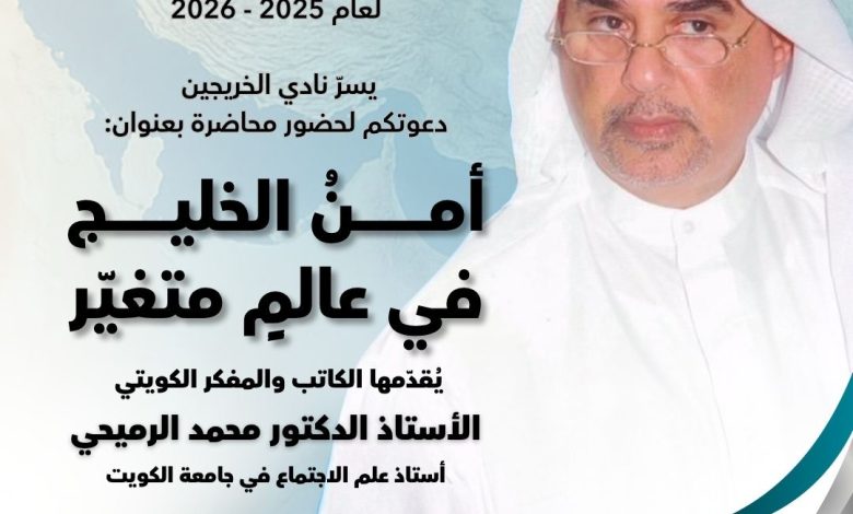 بحضور مستشار جلالة ملك البحرين لشؤون الإعلام نبيل بن يعقوب الحمر، وضمن البرنامج الثقافي لنادي الخريجين، أقيمت مساء الثلاثاء 28 أكتوبر في قاعة عيسى بن سلمان الثقافية، محاضرة فكرية حملت عنوان “أمن الخليج في عالم متغير”، قدّمها الكاتب والمفكر الكويتي الدكتور محمد الرميحي، أستاذ علم الاجتماع في جامعة الكويت.