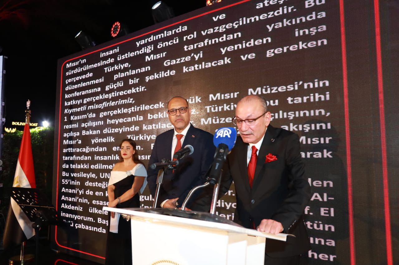 وفي كلمته في الحفل، صرح السفير التركي بالقاهرة صالح موطلو شن أن الذكرى الـ 102 لتأسيس الجمهورية التركية هذا العام لها دلالةً خاصة لكلٍّ من تركيا ومصر، إذ يصادف عام 2025 الذكرى المئوية لتأسيس العلاقات الدبلوماسية بين البلدين. وذكر السفير شن أنه تحت قيادة وإرادة مشتركة للرئيسين رجب طيب أردوغان وعبد الفتاح السيسي، وسعت الدولتان علاقاتهما وعمقتاها في السنوات الأخيرة عبر مجال واسع، من التجارة والسياحة إلى الثقافة والفنون.