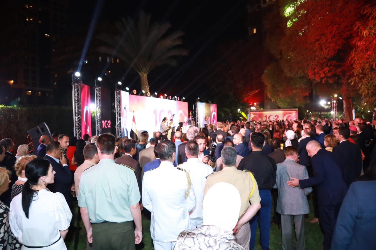 في حفل يوم الجمهورية الذي أقيم في السفارة التركية بالقاهرة تم الاحتفال بالذكرى الـ 102 لتأسيس الجمهورية التركية بحماس.. ويحمل عيد الجمهورية التركية هذا العام دلالةً خاصة لكلٍّ من تركيا ومصر، إذ يصادف عام 2025 الذكرى المئوية لتأسيس العلاقات الدبلوماسية بين البلدين. وتم الاحتفال بهذه المناسبة التاريخية بأكثر شكل لائق بها. وحضر الحفل أكثر من 1000 شخص، بما في ذلك المواطنون الأتراك والدكتور خالد العناني مديرًا عامًا اليونسكو وشخصيات بارزة من الدولة والمجتمع المصريين وشخصيات بارزة من الصحافة والثقافة والفنون ووسائل التواصل الاجتماعي المصرية، بالإضافة إلى العديد من السفراء والدبلوماسيين من البعثات الدبلوماسية في القاهرة إضافة الى الفتاة الفلسطينية ملاك أبو زياد.