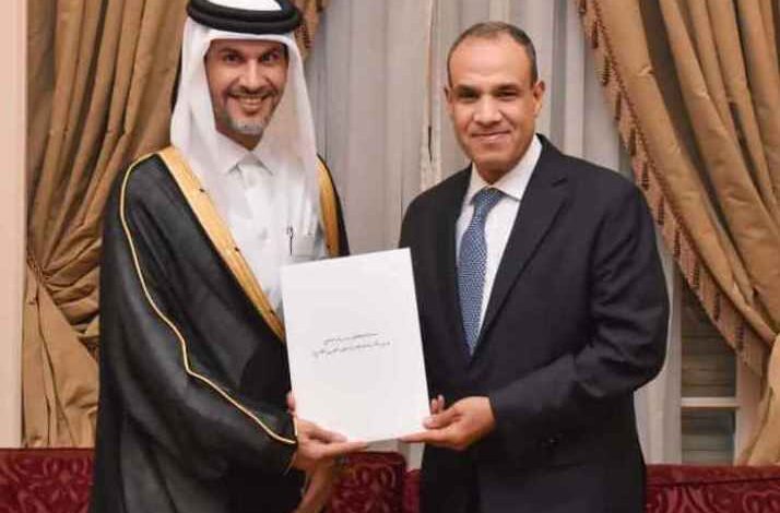 جاسم بن عبدالرحمن آل ثاني يقدم أوراق اعتماده سفيراً لدولة قطر إلى وزير الخارجية المصري