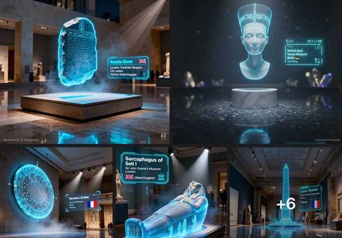 انتشرت فكرة، خلال الأيام الماضية حول عودة الآثار المصرية المسروقة إلى المتحف المصري الكبير بتقنية الهولوجرام، هدفها تحويل «الآثار المسروقة» إلى قضية رأي عام دولية لا يمكن تجاهلها.