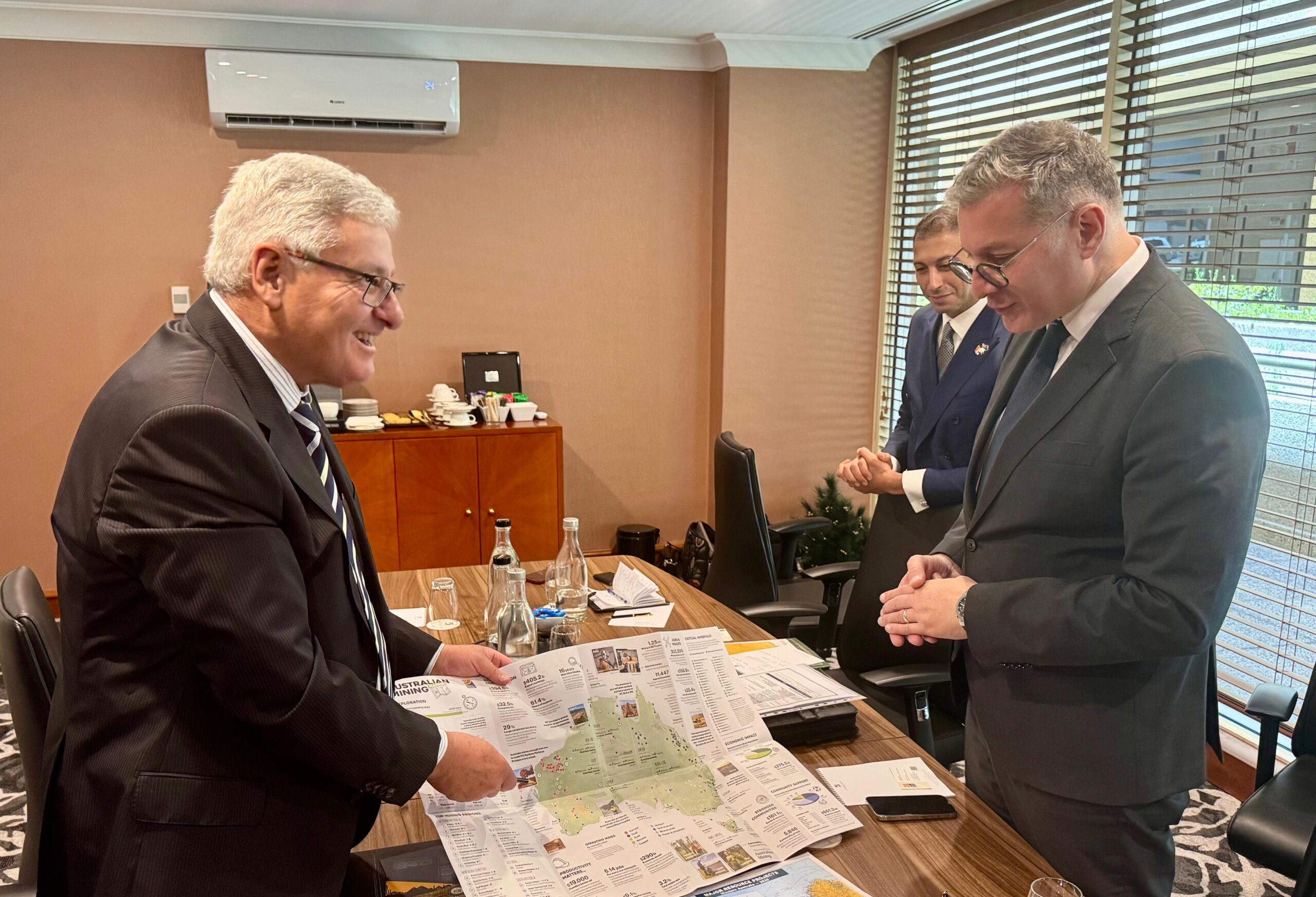 التقي المهندس كريم بدوي، وزير البترول والثروة المعدنية، ديفيد باركر المدير التنفيذي لمجلس المعادن الأسترالي (MCA)، لبحث فرص التعاون وجذب الاستثمارات الأسترالية لقطاع التعدين المصري، وذلك في إطار اهتمام الوزارة بتعزيز الاستثمارات وتطوير صناعة التعدين وفقاً للأساليب والممارسات التي تنتهجها الدول الرائدة تعدينياً.