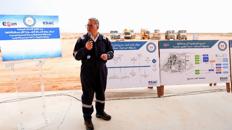 وخلال الجولة الميدانية استمع الوزير إلى شرح من المهندس إبراهيم مكي رئيس الشركة المصرية القابضة للبتروكيماويات، والدكتور شاهر رضا رئيس الشركة المصرية للصودا آش (ESAC)، حول مجريات العمل بالمشروع ومخطط الأعمال المتفق عليها مع المقاول العام شركة TCC الصينية، والجدول الزمني لمراحل التنفيذ، حيث تم توقيع عقد إنشاء المشروع مع شركة TCC الصينية، والبدء في الأعمال المبكرة من خلال المقاول العام، كما حصلت الشركة على الموافقة البيئية للمشروع، وتم توقيع اتفاق مباديء للتمويل مع عدد من البنوك الوطنية والإقليمية، ومن المخطط بدء التشغيل بالربع الرابع من عام 2028.