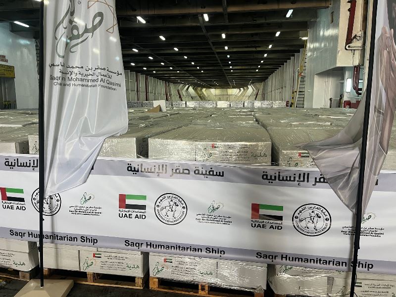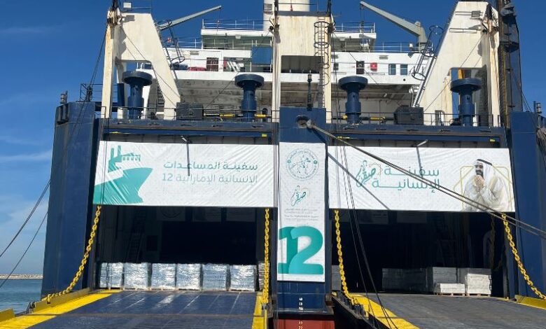 وصول سفينة “صقر” لميناء العريش محملة بـ4 آلاف طن من المساعدات لغزة بدعم من وكالة الإمارات