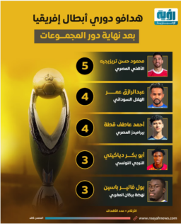 يتصدرهم تريزيجيه.. هدافو دوري أبطال إفريقيا بعد نهاية دور المجموعات | إنفوجراف لـ”رؤية”