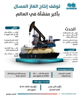توقف إنتاج الغاز المسال بأكبر منشأة في العالم | إنفوجراف