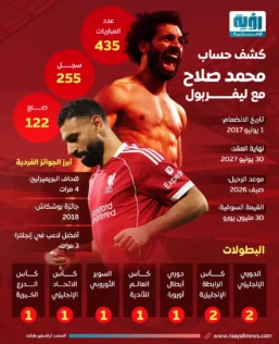 بعد إعلان رحيله.. “رؤية” تكشف إنجازات صلاح مع ليفربول| إنفوجراف