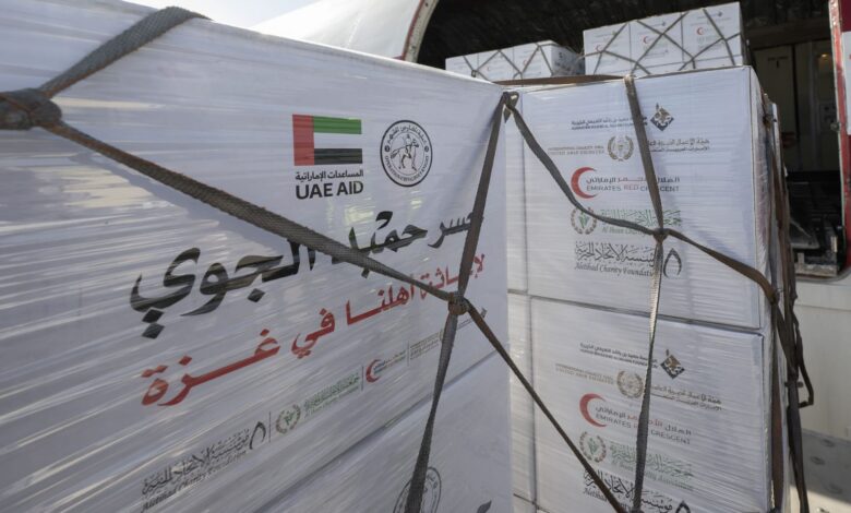 وتواصل عملية “الفارس الشهم 3” بالتعاون مع وكالة الإمارات للمساعدات الدولية، جهودها الإنسانية منذ انطلاقها، عبر مسارات الدعم المختلفة جواً وبراً وبحراً، لتوفير المساعدات الغذائية والإغاثية والطبية للأشقاء في قطاع غزة.
